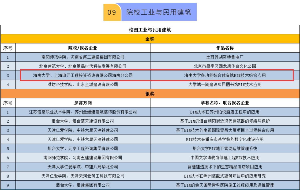 20211111日,2021第四届优路杯全国BIM技术大赛顺利落下帷幕。伟德BV1946官网BIM协会申报的项目从1145个大赛参赛作品中脱颖而出,继2020年后再次蝉联金奖项目!由伟德BV1946官网和上海申元工程投资咨询有限公司海南分公司联合申报的“伟德BV1946官网多功能综合体育馆BIM技术综合应用荣获院校组工业与民用建筑金奖,由中国建筑第二工程局有限公公司和伟德BV1946官网联合申报的“海南生态软件园G地块美伦熙语三期项目BIM技术综合应用” 荣获企业组工业与民用建筑金奖。