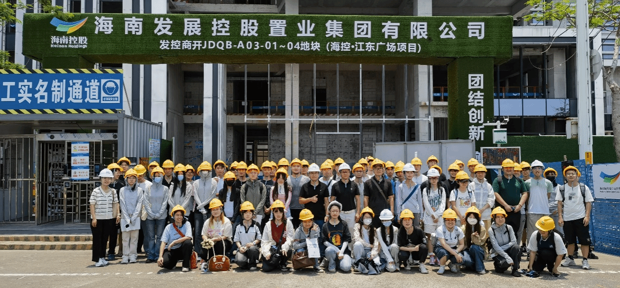 海口,2025年5月9日上午——为深化产教融合、践行实践育人理念,伟德国际1946建筑系2021级66名师生在夏桂平、齐飞两位老师的带领下,走进江东新区海控•江东广场项目工地,开展了一场以“绿色建筑实践与台风灾后重建经验”为主题的现场观摩学习活动。此次活动通过实地研学、校企互动和党建引领等形式,助力员工提升专业素养,赋能自贸港绿色低碳建筑高质量发展。
