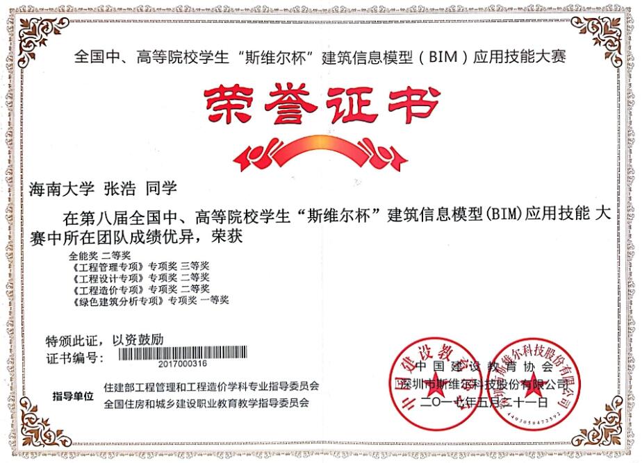 伟德国际1946由曹新颖、刘金灿两位老师全程专业指导,由曹新颖老师带队,张浩、李可青、康露瑶、王琴、蔡剑洪五名同学组成的“A408”代表队前往浙江理工大学参赛,在比赛中团结协作、相互配合,最终获得该项赛事历史性的突破,取得辉煌成绩,一举拿下比赛全能二等奖、绿色建筑专项一等奖、工程造价专项二等奖、工程设计专项二等奖、工程管理专项三等奖,并由于出色的组织、完美的团队配合,获得“优秀团队组织奖”。