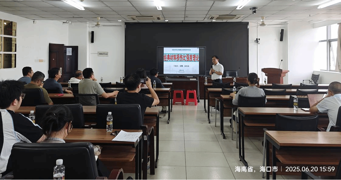 2025年6月20日,热带海洋土木建筑讲坛第十七讲在研发楼510报告厅顺利举行。本次讲坛邀请了中南大学丁发兴教授和浙江大学梅国雄教授分别做了题为《材料损伤比强度理论及结构抗震防火安全》和《公司产品的若干思考》的报告。