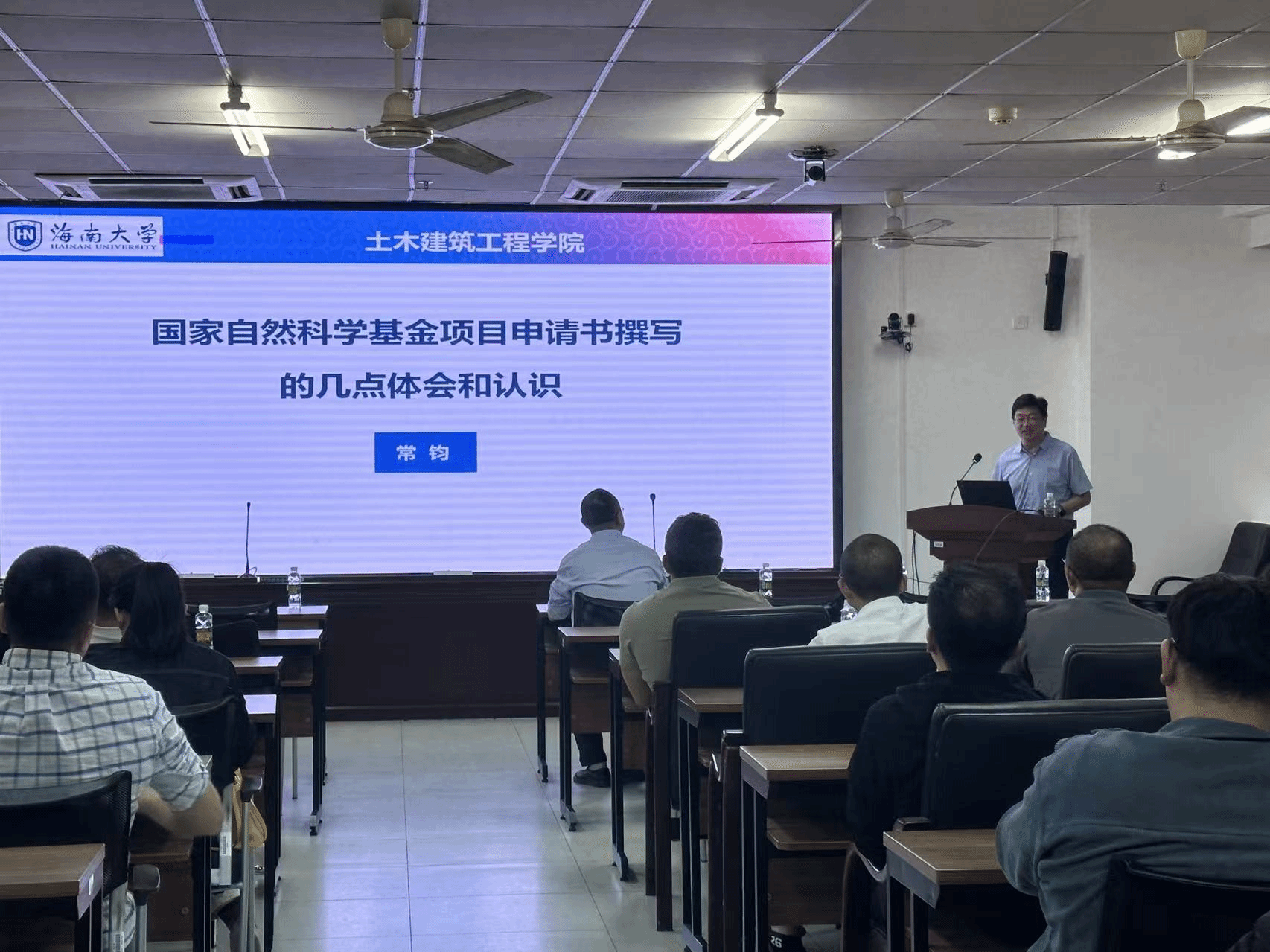 胡俊教授则从科研精神层面分享了宝贵经验。他强调了“贵在坚持”的重要性,指出国家自然科学基金的申报是一个不断积累、持续优化的过程。他鼓励老师们即使面对暂时的挫折,也要保持信心,持之以恒地完善研究内容与申报材料,终将取得成功。两位教授的分享内容翔实、言语恳切,赢得了在场教师的广泛共鸣。