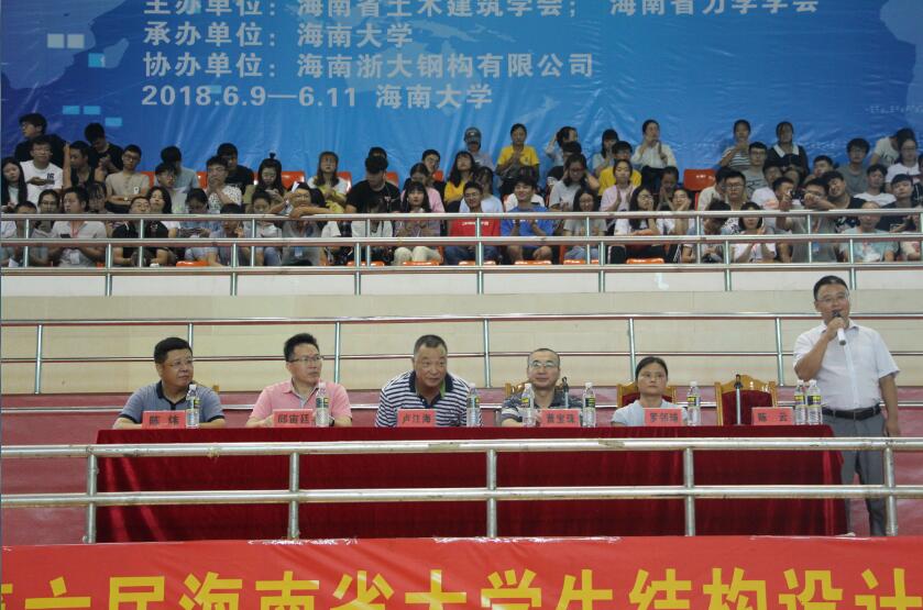 由海南省土木建筑学会、海南省力学学会联合主办,伟德国际1946承办的全国老员工结构设计竞赛海南分区选拔赛暨第六届海南省老员工结构设计竞赛,于6月9日上午9时在伟德BV1946官网联谊馆正式开幕。此次大赛由海南浙大钢构有限公司冠名赞助。