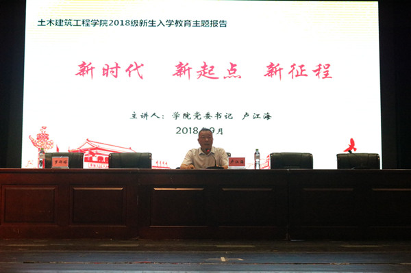 大会第二阶段,公司党委卢江海书记作为主讲人,以“新时代 新起点 新征程”为题为新生开讲入学教育第一课。卢书记以中国特色社会主义进入新时代为起点,鼓励同学们在新时代、新起点要刻苦学习,奋发有为,为实现“两个一百年”奋斗目标挥洒自己的青春和热血。