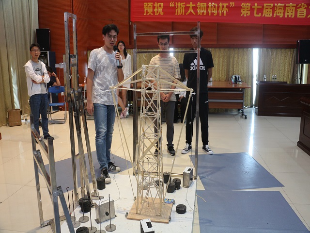 担任模型加载决赛的评审专家有:海南省建筑设计院总工程师张元平,伟德BV1946官网土木建筑公司经理曹宝珠,海南省力学学会理事长李光范,海南省土木建筑学会理事长段晓农,海口经济公司教授刘昭,海南柏森建筑设计有限公司总工程师张明,海南科技职业大学教授于英,海南周华结构设计事务所有限公司总工程师周华。