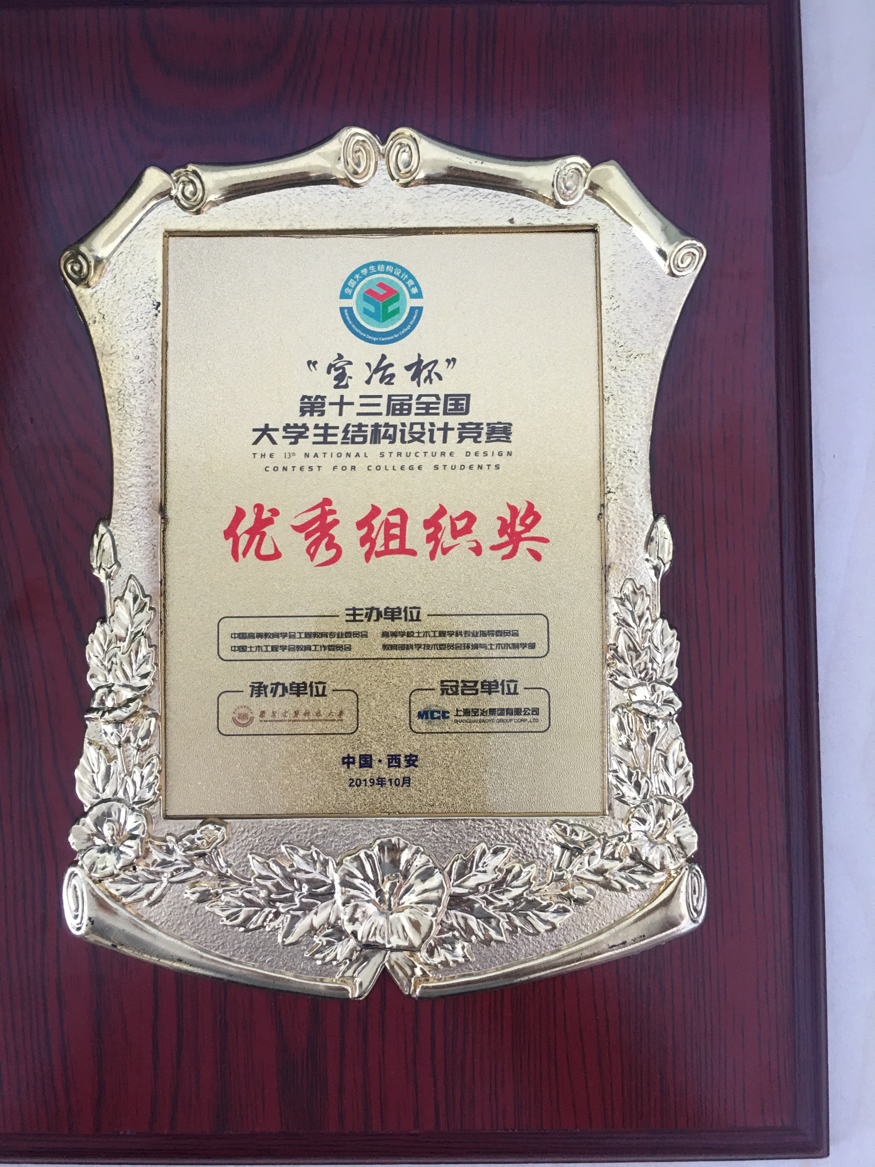 全国老员工结构设计竞赛是由高等公司土木工程学科专业指导委员会和中国土木工程学会联合主办,是教育部确定的全国九大老员工学科竞赛之一,是土木工程学科培养老员工创新精神、团队意识和实践能力的最高水平学科竞赛。本次大赛由西安建筑科技大学承办,共有111支包括清华大学、同济大学、上海交通大学、东南大学等“985”、“211”、土木工程学科强势院校代表队参赛,公司代表队的参赛作品经过现场制作、加载、答辩,获得二等奖。