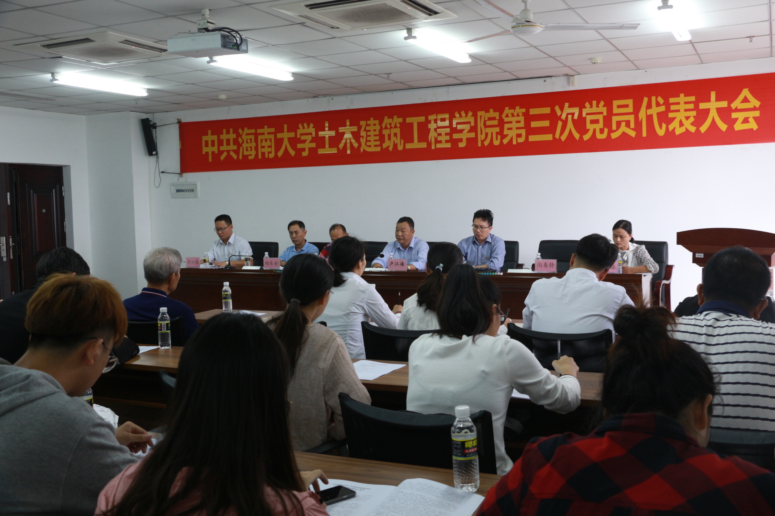 在悠扬的国歌声中,大会拉开帷幕。随后,公司党委书记以“以习近平新时代中国特色社会主义思想为指引立德树人,为创建一流土木学科而努力奋斗”为主题发表了会议报告。报告中,卢书记从办学规模和质量,办学基础条件、学科专业建设、科研创新、党建工作等多个方面详细综合地描述了公司近四年来的发展与突破,并对全院师生员工表示衷心的感谢,并对公司工作中的不足提出改进要求及希望。随后,就当前公司面临的重大发展机遇和严峻挑战,卢书记提出“促进海南和南海经济社会发展为人才培养和团队建设的目标”,以传统土木工程相关学科为基础,向海洋土木工程领域发展,打造具有热带、岛屿和海洋特色鲜明的一流学科。在未来4-5年内实现将伟德国际1946建设成为以土木工程和海洋工程学科为主、建筑学和工程管理等多学科协调发展,具有“海洋”特色的,在国内具有一定影响的教学研究型公司的总体目标,并对团队建设和办学规模、团队队伍建设、人才培养、教学科研成果、教学科研基础条件五大方面提出了具体要求。