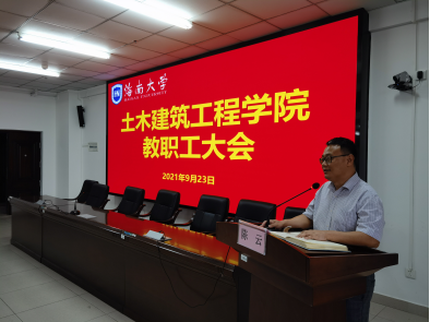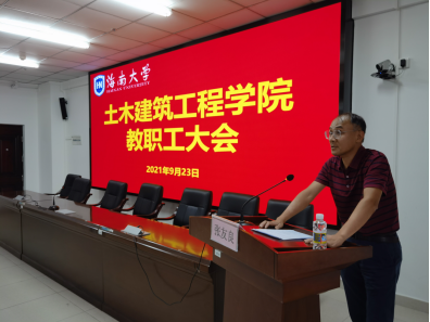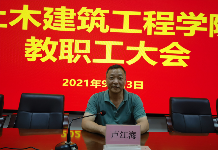 2021年9月23日下午,土木建筑工程公司新学期教职工会议在研发楼510报告厅召开。公司党政领导班子、党委委员、系主任、实验教学中心负责人、支部书记、科室管理职员和全体教师等参加会议。此次会议旨在传达公司暑期工作会议精神,增强公司教师对公司发展状态、战略方向和改革政策的了解,深入理解公司下一步发展方向、路径和举措,进一步凝聚共识、形成合力,为公司“开启新征程、奋进一流学科”开好局、起好步。会议由公司党委书记卢江海主持。