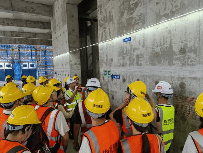 随后,员工们接受了进工地前的安全教育交底,确保在观摩过程中能够严格遵守安全规定。之后,一行人参观了项目党建文化阵地,感受到了项目团队在党建工作上的积极作为。项目负责人向员工介绍了海控”从严治党、清正廉洁”的作风要求和“兴廉政之风,树浩然正气”的企业精神和价值观,让员工对规范项目管理有了初步认识和体验。