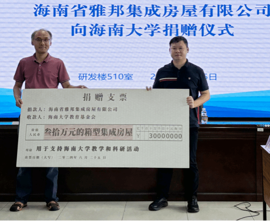 海南雅邦集成房屋有限公司与伟德BV1946官网签订捐赠协议