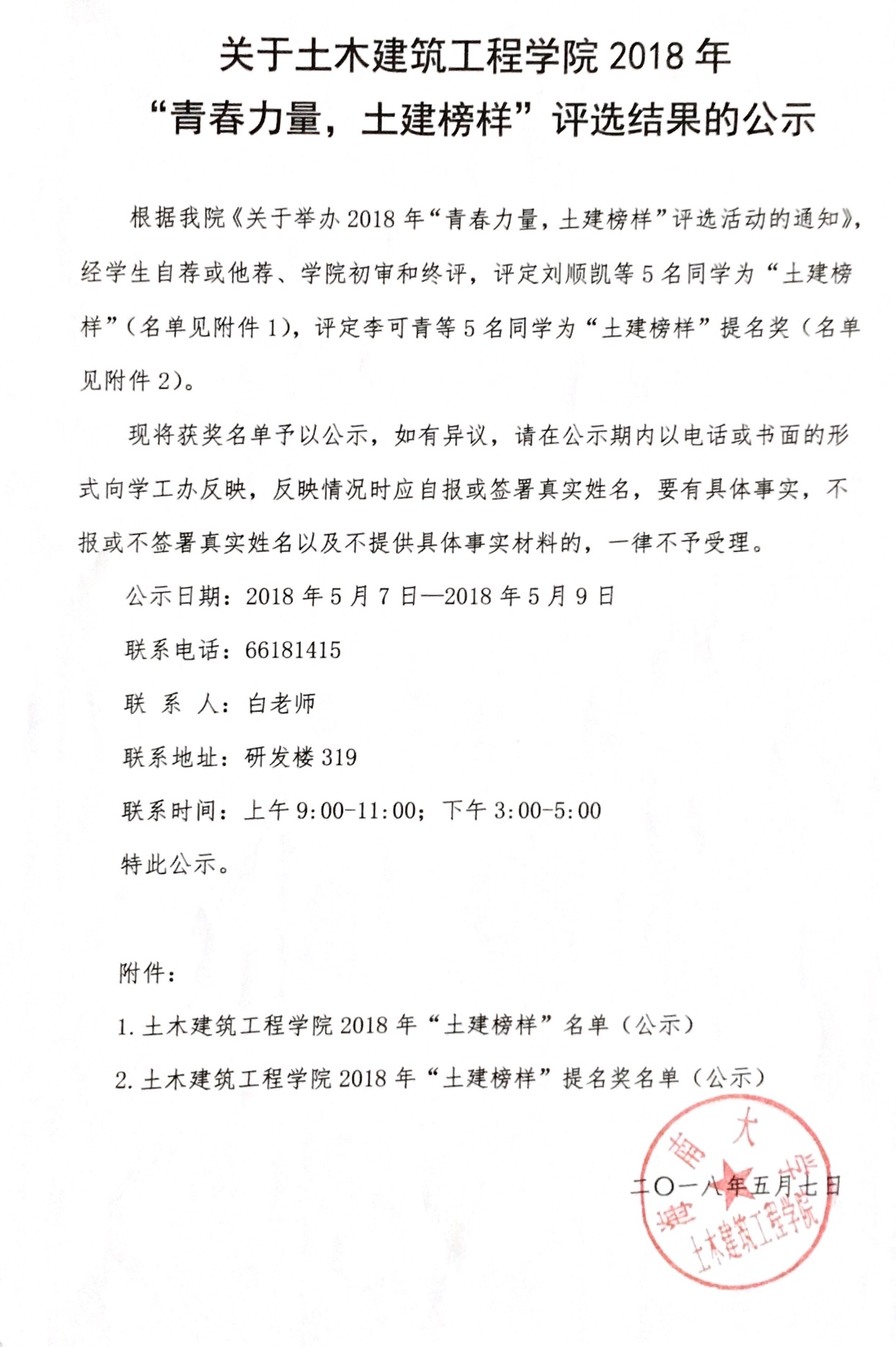 关于伟德国际19462018年“青春力量,土建榜样”评选结果的公示
