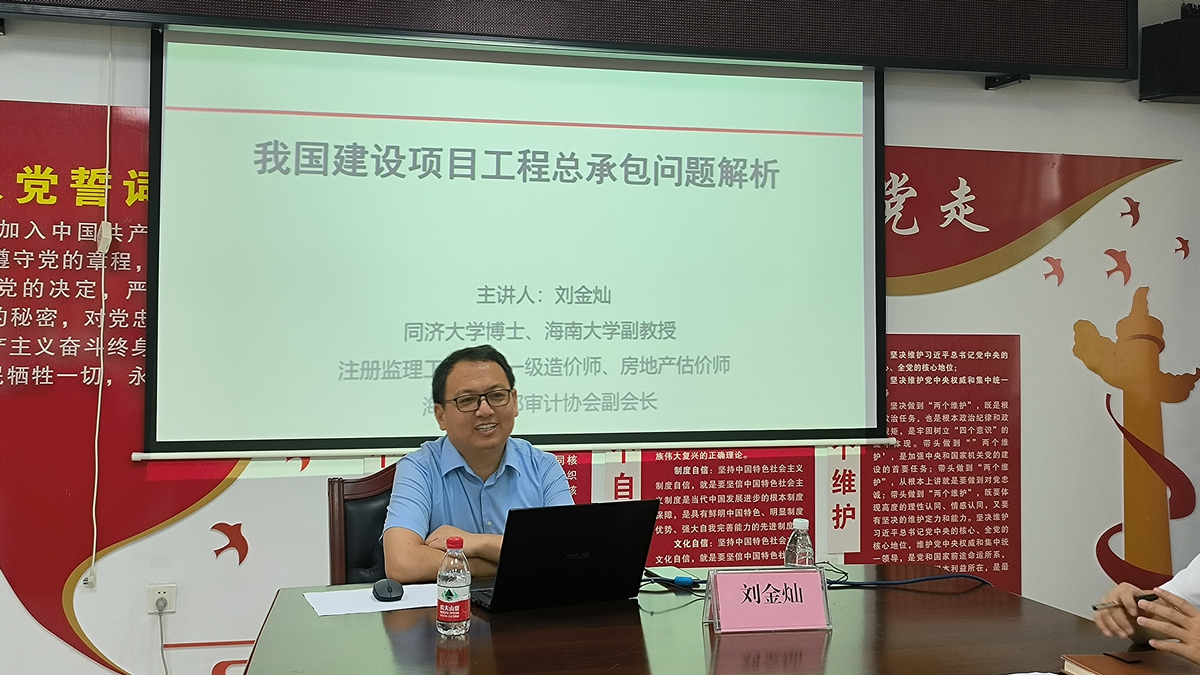 2022年6月9日,公司工程管理系副教授刘金灿老师受邀前往保亭县审计局、住建局,分别作业务能力提升讲座,助力政府部门干部能力提升建设。这是伟德BV1946官网与保亭县政府签署政校合作框架协议及伟德国际1946与保亭县审计局、住建局订立合作协议之后举行的系列活动之一。
