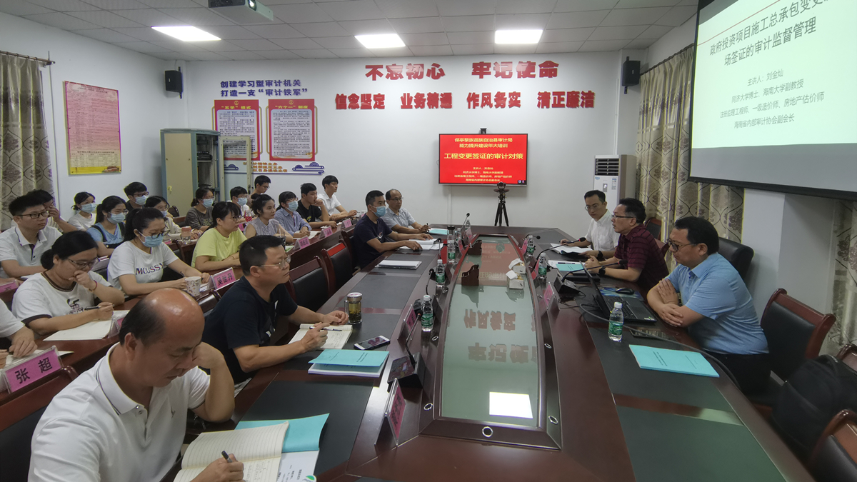 6月9日下午,在保亭县审计局会议室,二十余人参加讲座活动。政府投资项目的工程结算超设计概算是普遍存在的问题,如何消除?办法很多,而其中管控工程变更是一个非常重要的环节。刘金灿老师针对工程审计业务的工作需要,并且结合业务干部的实际知识背景,选择《政府投资项目施工总承包变更及现场签证的审计监督管理》为讲座的主题,系统的讲授了政府投资工程建设活动的特点、工程变更的内涵及类型、工程变更问题审计治理对策。讲座结束,刘老师与审计局领导、干部互动热烈。审计局干部提出了工作中存在的疑难问题,刘金灿老师逐一解答。审计局局长陈斌表示,讲座就像及时雨,让审计局干部增长了知识,开阔视野,提高了大家分析问题、解决问题的能力,刘金灿老师深厚的理论底蕴、丰富的工程实践经验,令人印象深刻。伟德国际1946与保亭县审计局于2021年5月份订立合作协议,并且开展了实质性合作。审计局委托公司,针对保亭县政府投资工程项目实际情况,开展“施工总承包模式下工程变更及现场变更签证问题的审计治理研究”。