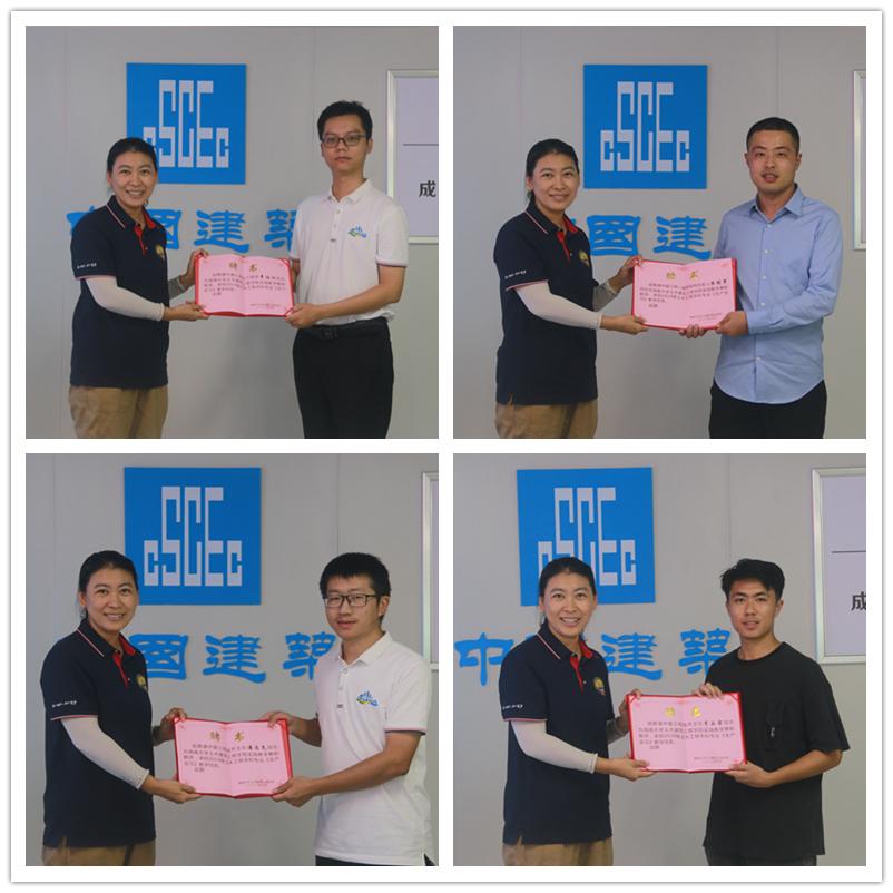 薛春霞代表公司,向章伯阳等四位技术骨干颁发实践教学兼职指导教师聘书