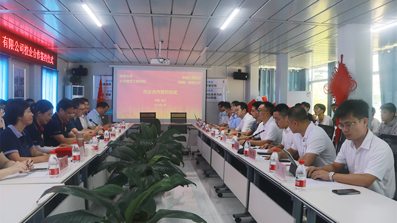 张长海表示,中建三局于2011年成立海南分公司,在海南区域拓展业务。为了适应海南自贸港建设需要,进一步成立中建三局集团(海南)有限公司,公司积极投身于海南自由贸易港建设,在海南 市场发展迅速,急需一批高技术、高素质的复合型人才。我们与中建三局集团(海南)有限公司共建校企合作基地,是贯彻《国务院办公厅关于深化产教融合的若干意见》精神、建立产教融合、校企合作、协同育人机制的一项重要举措,其目的就是高校与企业优势互补,共同培养未来职场精英。通过该平台,让员工直接面向企业真实生产环境进行专业学习实践,了解行业最新发展动态,激发员工创新思维和社会责任感,提升综合素质和能力;同时充分发挥高校较强的科研实力,研究解决企业实际工作中的技术和管理难题,助力公司快速发展,实现“优势互补、资源共享、互惠互利、共同发展"的校企双赢。张长海强调,合作协议的签订,是双方合作的良好开端,公司将在人才培养、科技创新和联合攻关等方面,加强与中建三局集团(海南)有限公司的多方位合作,推进合作育人、协同创新和成果转化,实现高校人才培养质量的提升和企业发展的双赢。