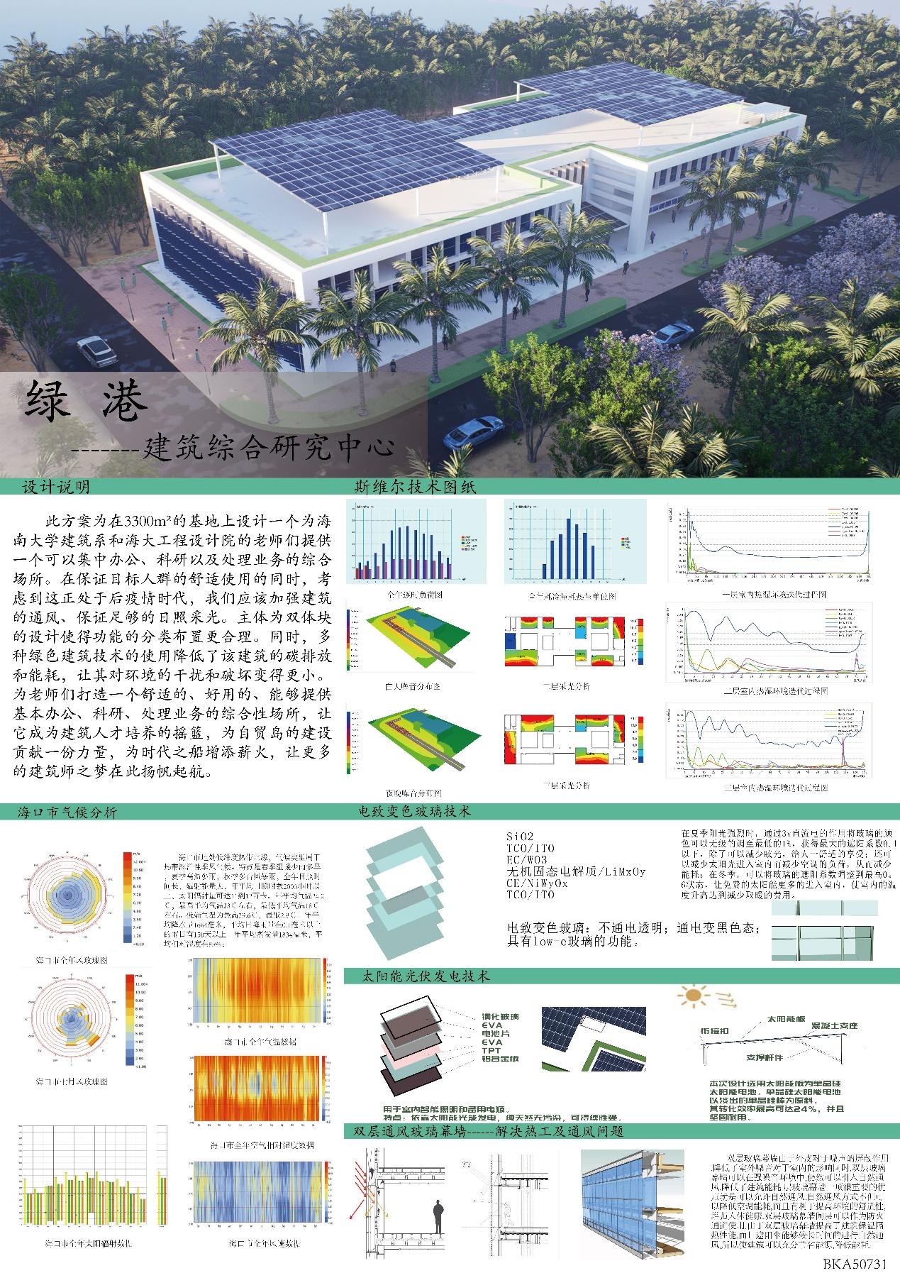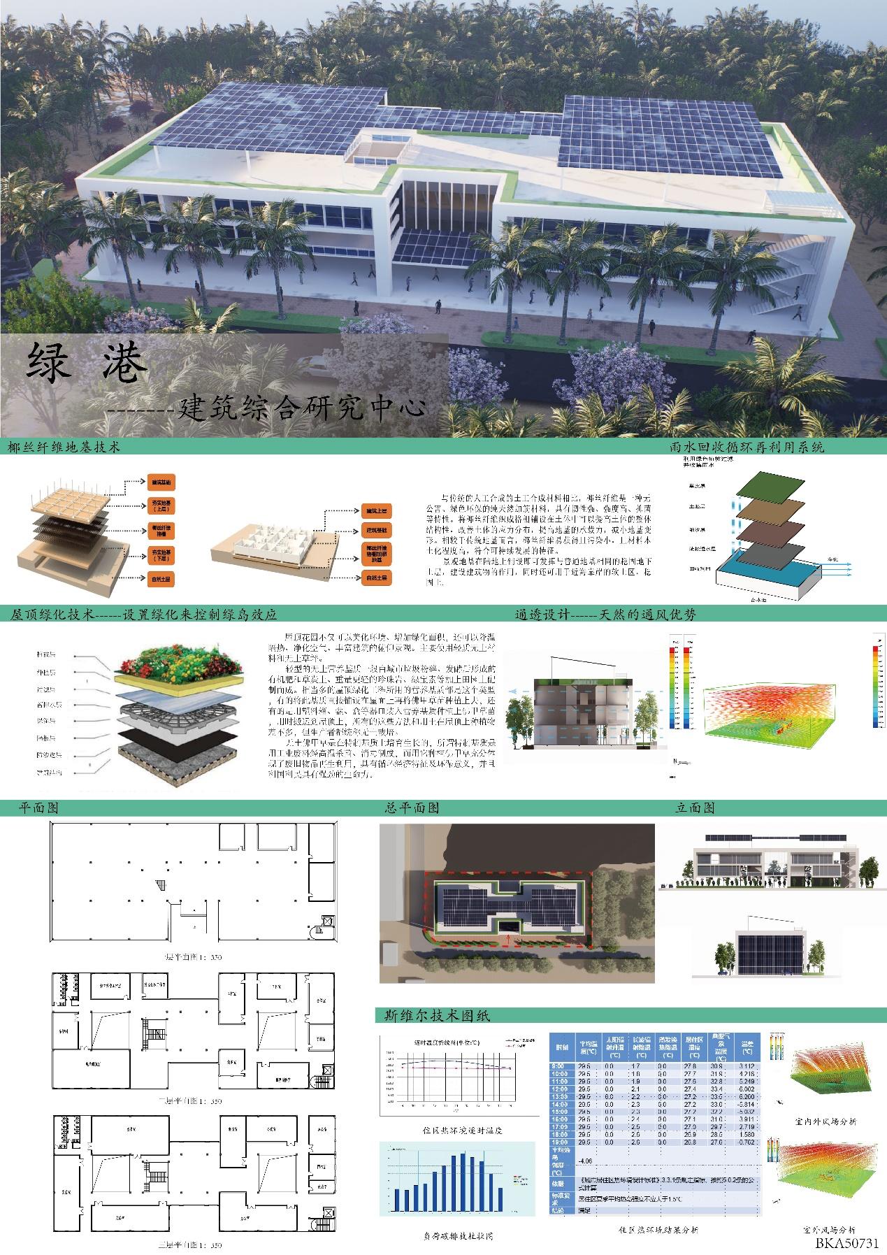 三等奖作品绿港——建筑综合研究中心,此方案是在3300㎡的基地上拟建一个可以为伟德BV1946官网建筑系和海大工程设计院的老师们提供集中办公、科研以及处理业务的综合场所。在保证目标人群的舒适使用的同时,考虑到这正处于后疫情时代,应该加强建筑的通风、保证足够的日照采光。主体为双体块的设计使得功能的分类布置更合理。同时,多种绿色建筑技术的使用降低了该建筑的碳排放和能耗,让其对环境的干扰和破坏变得更小。为老师们打造一个舒适的、好用的、能够提供基本办公、科研、处理业务的综合性场所,让它成为建筑人才培养的摇篮,为自贸岛的建设贡献一份力量,为时代之船增添薪火,让更多的建筑师之梦在此扬帆起航。