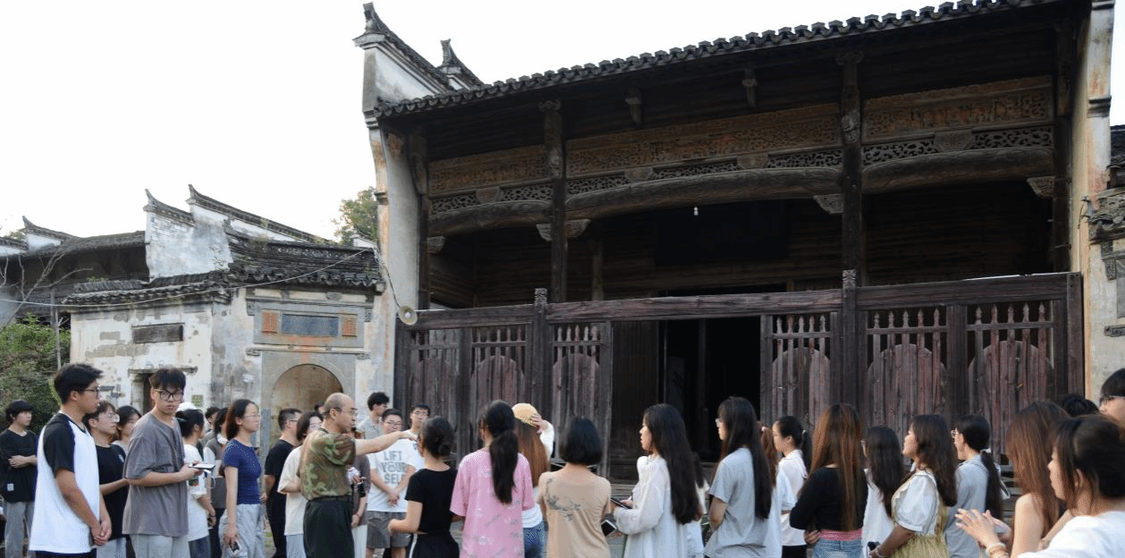 实习期间,蒋伊琳老师和姜霖老师带领员工参观了晓起村的进士第、江氏宗祠、荣禄第、江氏祖宅等代表性建筑。白小鹏老师以江氏宗祠为例为同学们详细讲解了徽派建筑的功能、布局以及细部特征,加深了同学们对徽派建筑的理解。