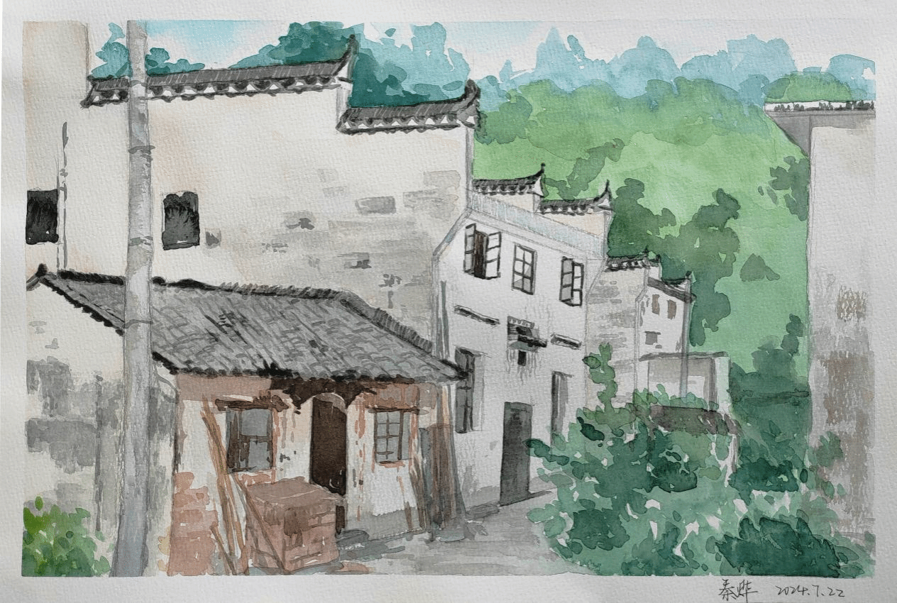 建筑艺术表现基础实习旨在让同学们了解徽派建筑的功能布局、结构和细部特点,通过对建筑分析抓形、重点提取、色彩表达的训练,综合提升员工对建筑整体的认知和表达能力。实习过程中,白天同学们进行建筑写生,傍晚由老师们组织作品联展与作业讲评。