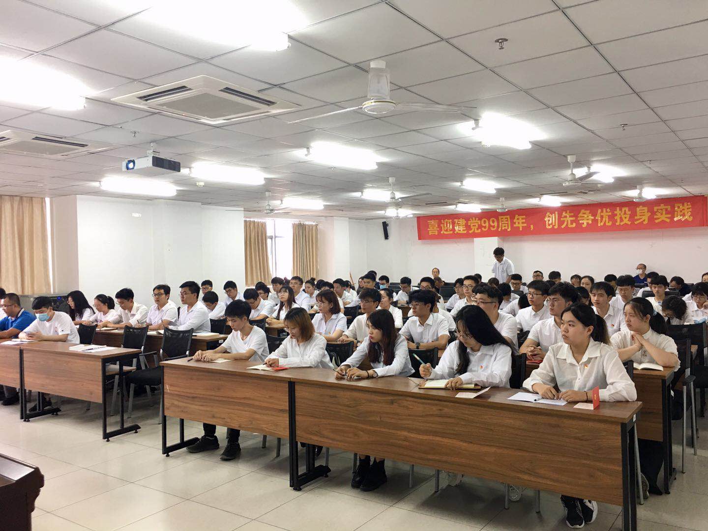 2020年6月30日下午,伟德国际1946庆祝中国共产党成立99周年暨入党宣誓大会在研发楼510会议室举行。公司党委书记卢江海,特邀党建组织员麦秀芬,党委委员、副经理邱宙廷,党委委员、副经理张友良,党委委员李江俊以及全体师生党员参会,会议由党委副书记罗邻球主持。