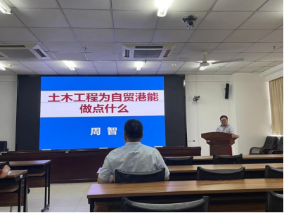 周智经理围绕公司的中心工作,做了题为《土木工程为自贸港能做点什么》的报告。报告从土木工程概念与内涵、土木工程专业特征、土木工程发展趋势、热带海洋土木工程、中国建造与探索五个方面展开。周智经理指出土木工程作为镶嵌在地球上的人造工程,它的内涵既包括大陆,也包括海洋。只要有人类就有土木工程,永无止境,未来在役建筑的维护加固改造,以及城市更新,有许多防灾减灾、结构安全鉴定、材料耐久性方面的问题需要解决和研究,并进一步指出土木工程专业的发展模式应为国家战略+地域工程科学问题。随着自贸港建设的不断深入推进,仍有很多重大工程需求,基于海南本土自然环境及重大土木科学问题,如建筑防水、抗台风、耐久等区域特征问题都尚未得到有效解决,热带海洋土木工程未来大有可为。